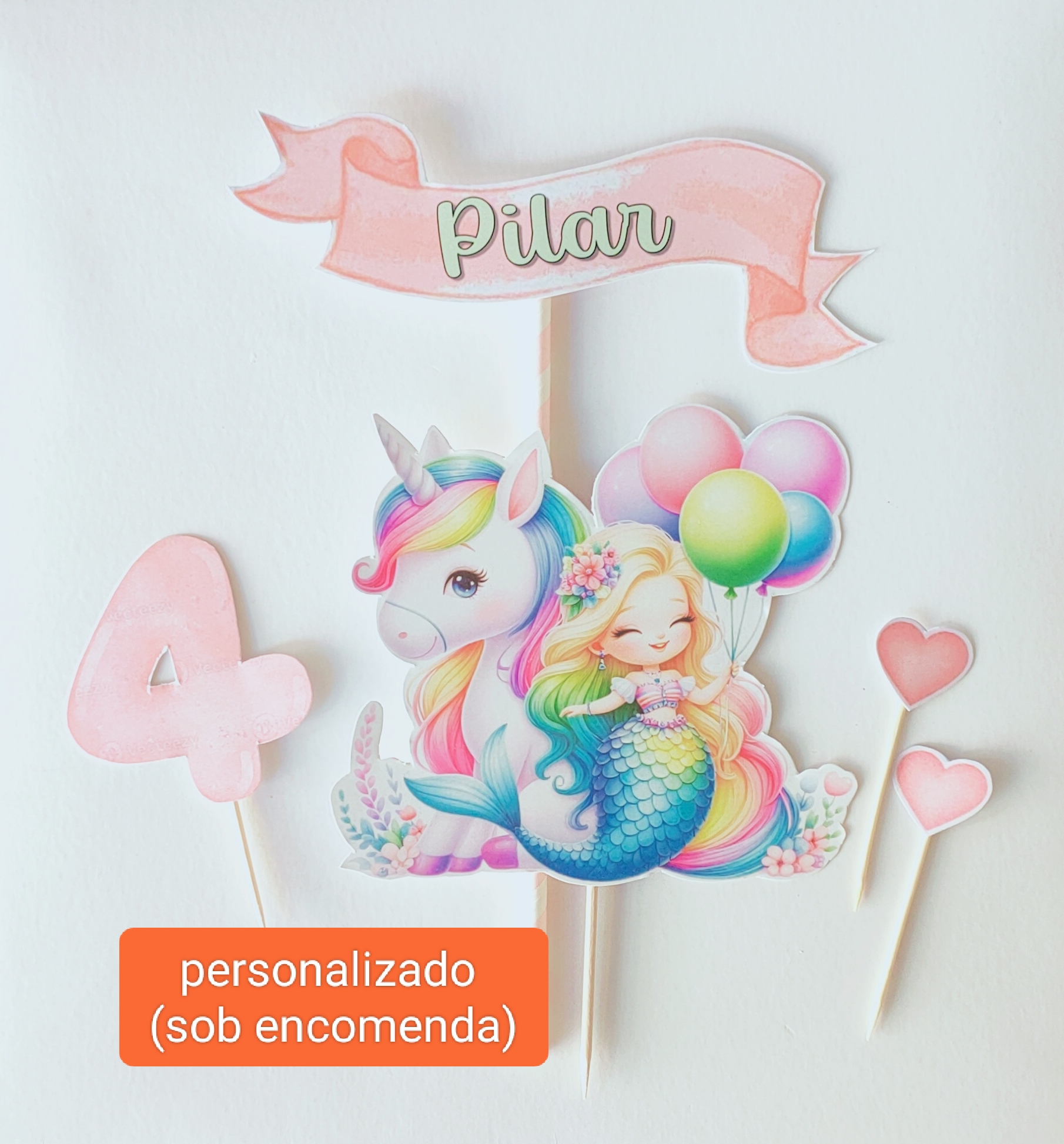 Topo de Bolo – Topper Unicórnio/Sereia